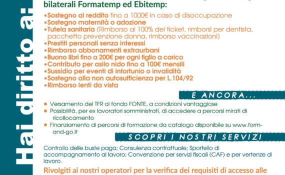 La FeLSA CISL (Federazione Lavoratori Somministrati Autonomi ed Atipici) è la categoria della Cisl cui si rivolgono i lavoratori delle agenzie di somministrazione, i collaboratori a progetto, i lavoratori autonomi. Assiste i lavoratori nell’accesso alle prestazioni economiche garantite dagli Enti Bilaterali Formatemp ed Ebitemp. sito web Felsa LombardiaPec felsalombardia@pec.itEmail felsa.monzabrianzalecco@cisl.it […]