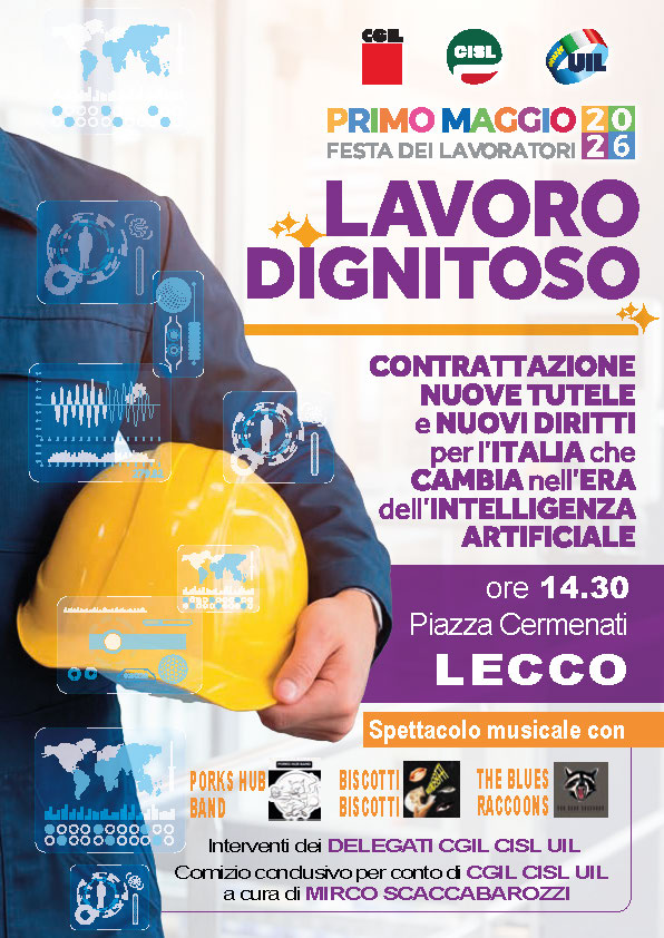 Quest’anno CGIL CISL UIL hanno deciso di dedicare la Festa dei Lavoratori al tema del “LAVORO DIGNITOSO” con focus su“Contrattazione, nuove tutele e nuovi diritti per l’Italia che cambia nell’era dell’intelligenza artificiale”.